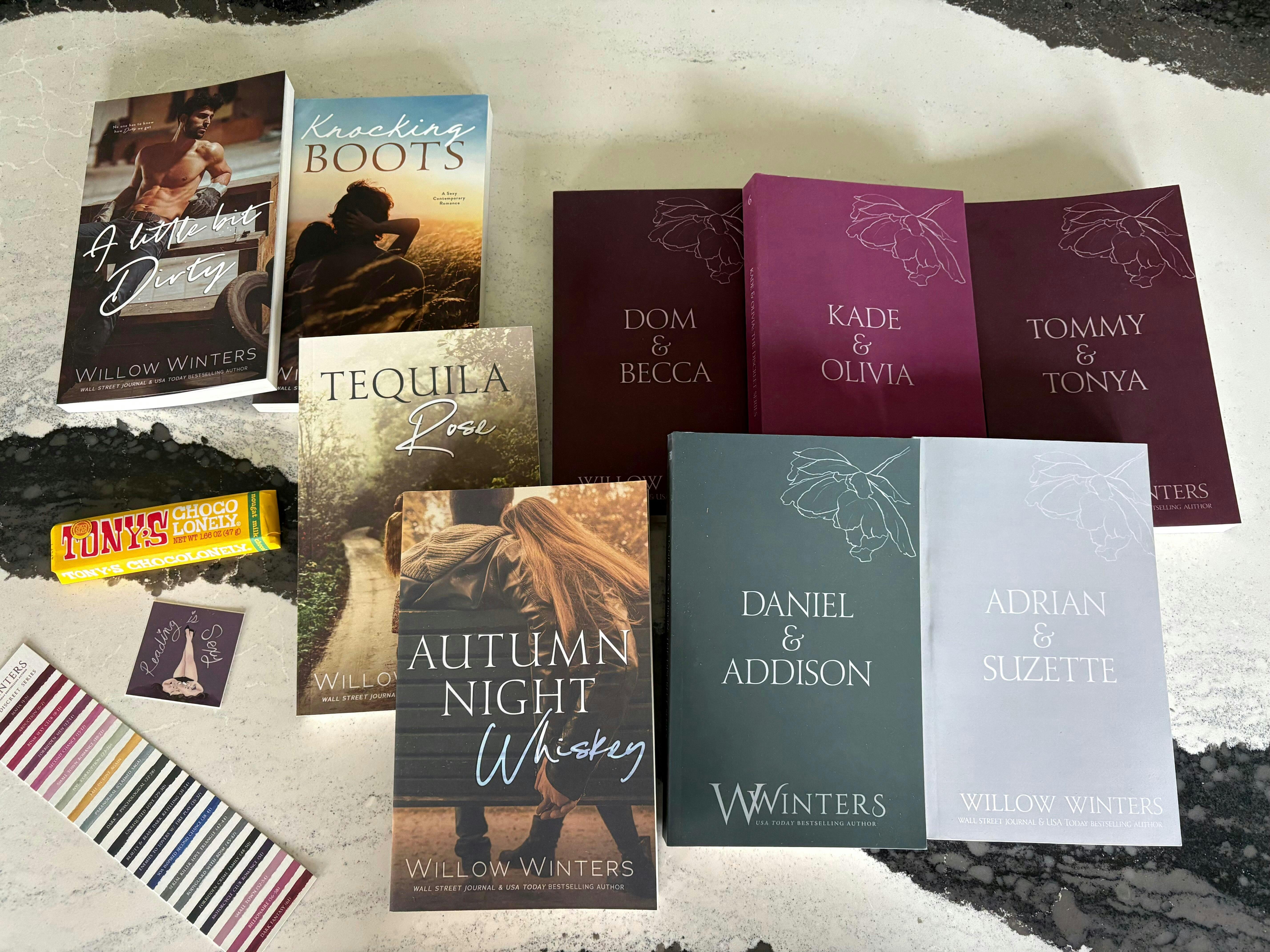 - Willow Winters collections can be counted as two, three or four of the boxes total books due to their size and interior quantity.