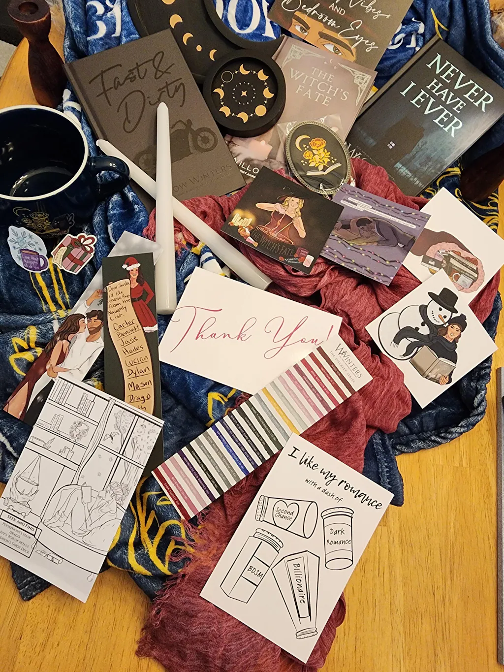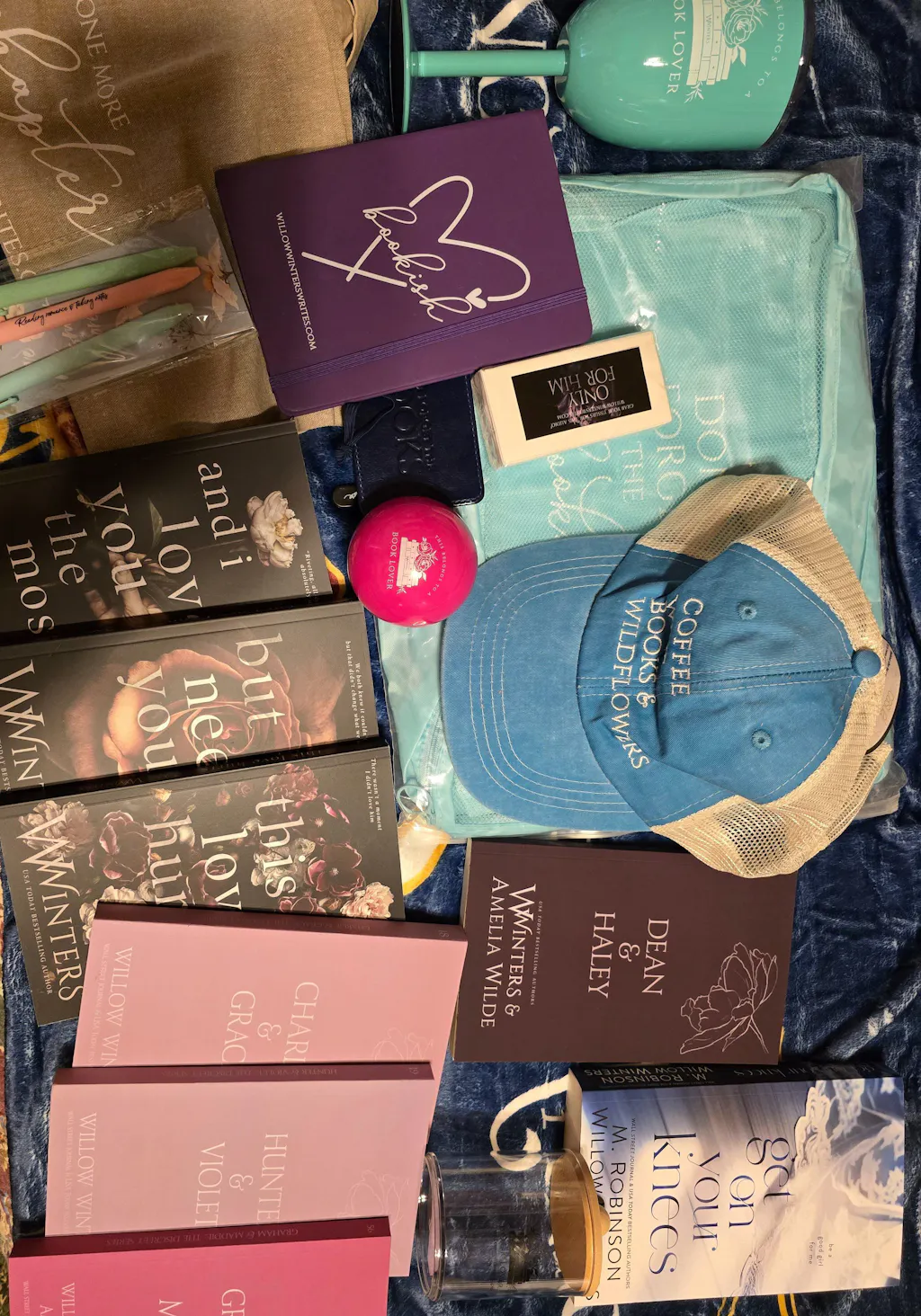 - We only offer a mixture of books and merch (quantities below), all book boxes, or all merchandise boxes. Please be CLEAR IN YOUR NOTES when indicating to us what box you’d like!